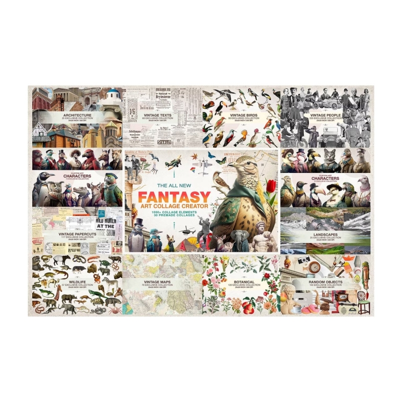 Collage Hunters Dream Bundle مثالية لأي شخص يريد إطلاق العنان لإبداعه واستكشاف إمكانيات فن الكولاج. سواء كنت مبتدئا أو محترفا ، ستجد شيئا يلهمك في هذه الحزمة. ستتمكن من الوصول إلى الصور عالية الجودة والقوام والخلفيات والخطوط والفرش والتراكبات والمزيد. جميع الأصول متوافقة مع برامج التصميم الشائعة مثل Photoshop و Illustrator و Canva وما إلى ذلك.