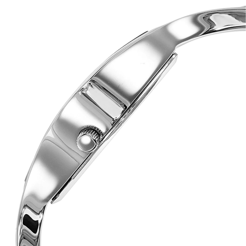 نمط الحزام: حزام معدني مرصع بالكريستال على طراز سوار فضي اللون ، مؤمن بمشبك قابل للطي
