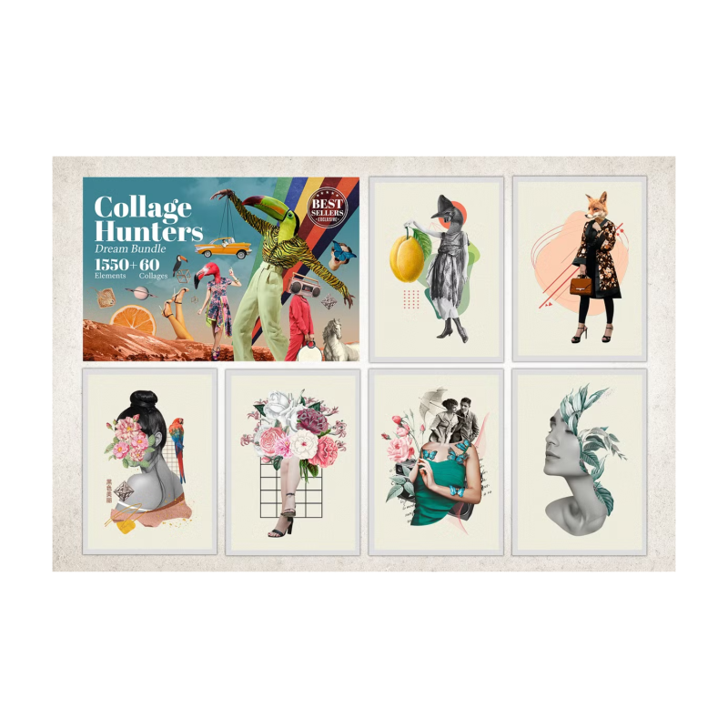 Collage Hunters Dream Bundle مثالية لأي شخص يريد إطلاق العنان لإبداعه واستكشاف إمكانيات فن الكولاج. سواء كنت مبتدئا أو محترفا ، ستجد شيئا يلهمك في هذه الحزمة. ستتمكن من الوصول إلى الصور عالية الجودة والقوام والخلفيات والخطوط والفرش والتراكبات والمزيد. جميع الأصول متوافقة مع برامج التصميم الشائعة مثل Photoshop و Illustrator و Canva وما إلى ذلك.