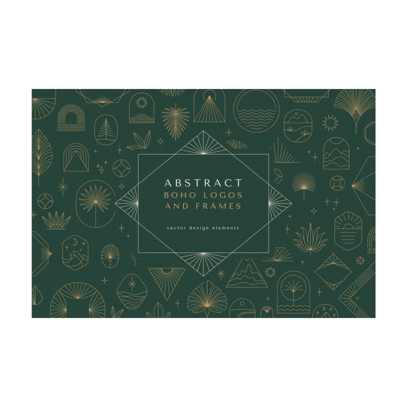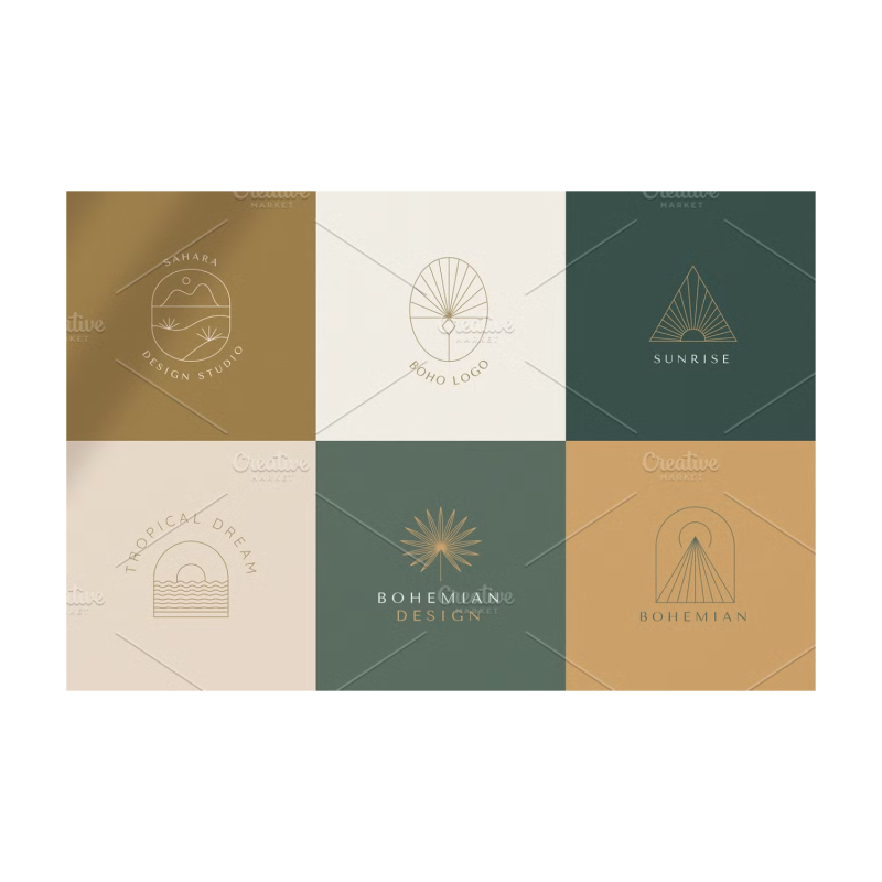 الشعارات البوهيمية - مجموعة جديدة من عناصر وقوالب تصميم المتجهات. الشعارات المجردة وعناصر العلامات التجارية بأسلوب خطي بسيط عصري وشعارات وشارات لاستوديوهات التصميم والمحلات التجارية والشركات النسائية والمنتجات المصنوعة يدويا.