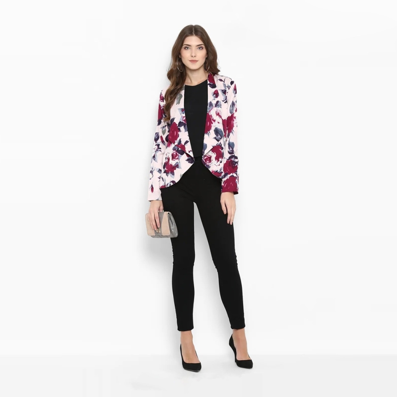 بليزر نسائي بلون زهري أحادي الصدر
