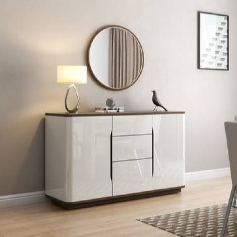 A delight in white. The Baltoro sideboard is all neat, clean lines, and no fuss. The pristine whites and the walnut detailing give it an ethereal look. Three drawers and four shelves make room for your prized china. The walnut-finished table top serves as an elegant serving station. You’re all set - send out that dinner party invite!