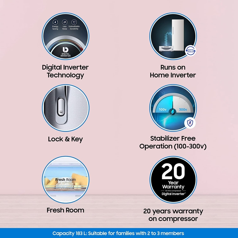 • Capacity 183 Liters: Suitable For Families With 2 To 3 Members